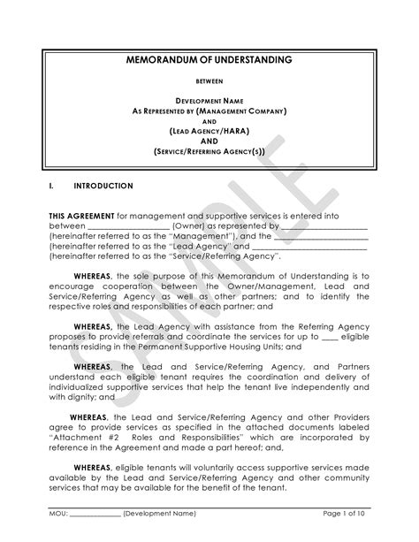 Memo Of Understanding Template