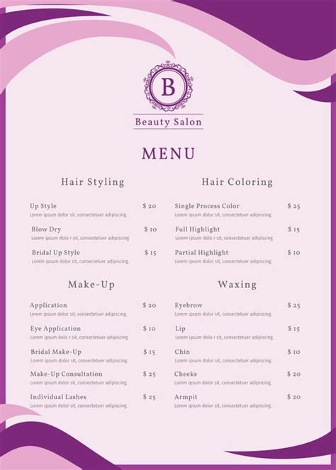 Nail Salon Service Menu Template
