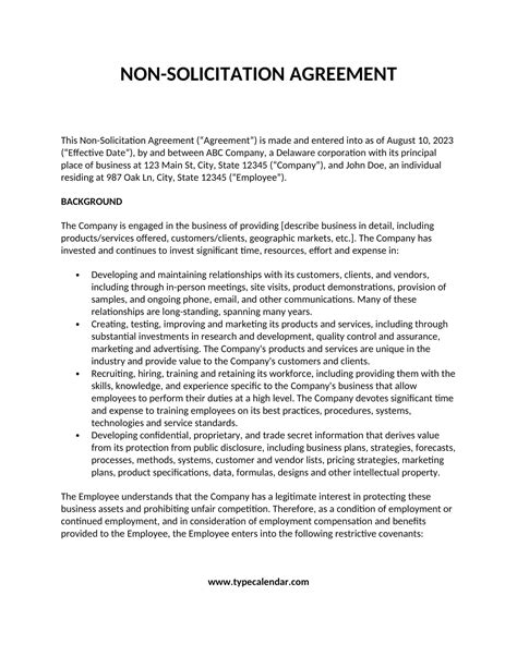 Non Solicitation Agreement Template