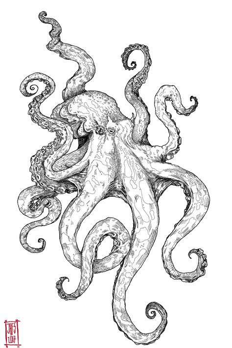 Octopus Outline, Octopus Sketch, Octopus Drawing, Octopus Tattoo Design