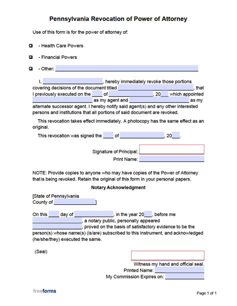Pa Power Of Attorney Template
