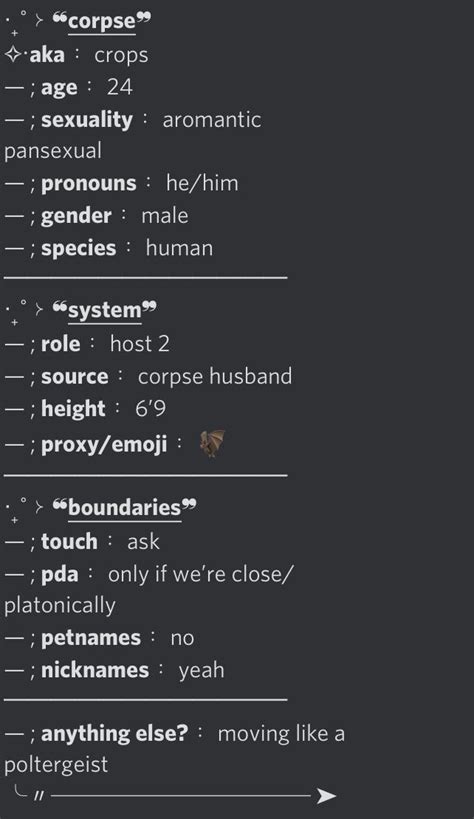 Easy copy and paste for mobile in comments! This prototype will generate a website of system members and. These are templates you can use with the discord bot 'pluralkit'! See a recent post on tumblr from @oflordships about pluralkit layouts. Pluralkit is a bot designed for plural communities on discord. The full list of all commands in pluralkit, and a short description of what they do.