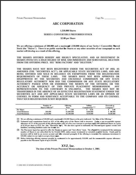 Private Offering Memorandum Template Template 1 Resume Examples