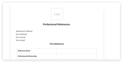 Professional References Template Word