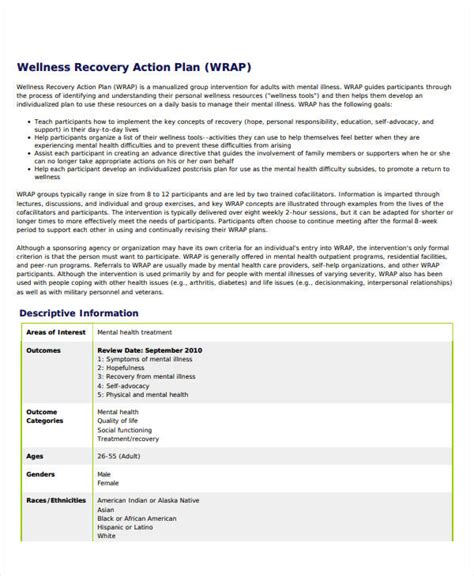 Available in a4 & us letter sizes. Instantly download wellness recovery action plan template, sample & example in microsoft word (doc), google docs, apple pages format. The wellness recovery action plan is a framework with which you can develop an effective approach to manage distressing symptoms and gain insight into patterns of behavior. Anyone can use the wrap to get well, stay well, and design.