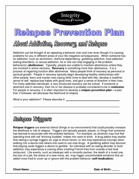 Relapse Prevention Plan Template