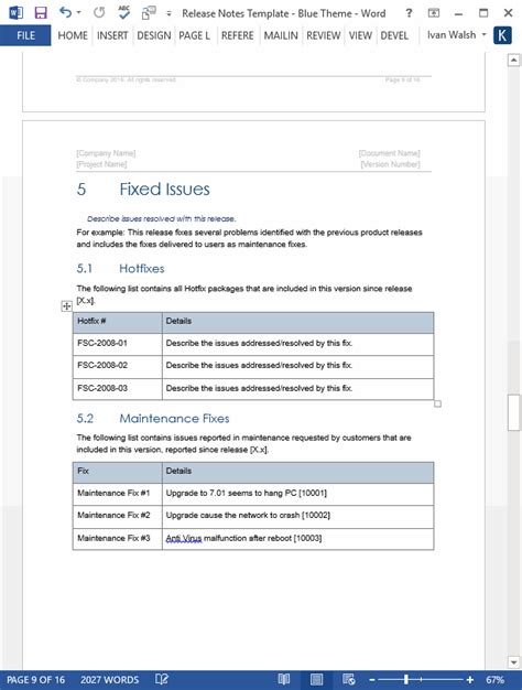 Release Notes Template Word