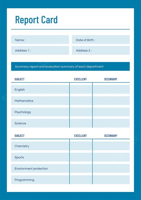 Report Card Template Free