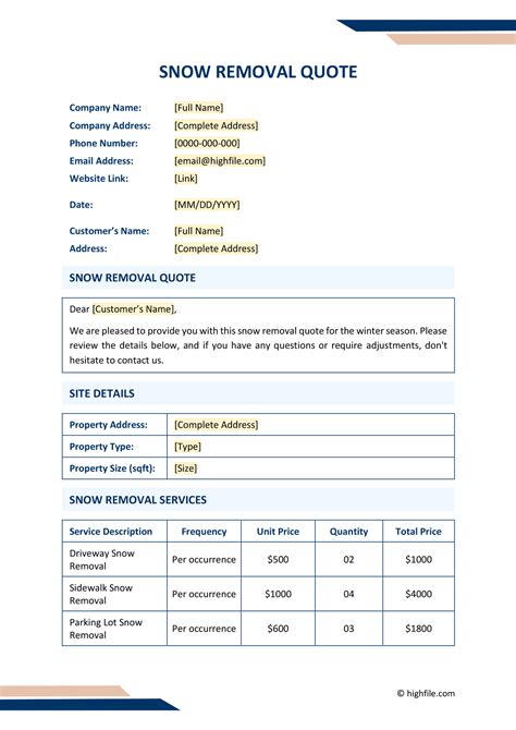 Snow Removal Quote Template Word Excel PDF Google Docs Google