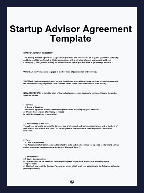 Advisor Agreement Startup Template