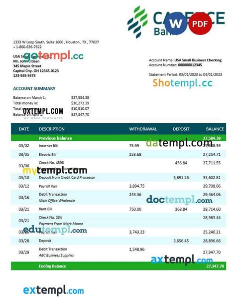 Template Cadence Bank Statement - Access your statements as soon as they are issued, helping you stay up to date with your finances. A bank statement template may vary from bank to bank. Get peace of mind with more security. A business bank statement includes an account summary, also known as a. It includes an account summary and information about your bank, business, and bank account. 13 months of images and data and seven years of pdf bank statements always available; Up to 12% cash back we highly recommend using updf as your bank statement generator because it is quick, accurate, has many tools for customizing and editing your bank statement,.