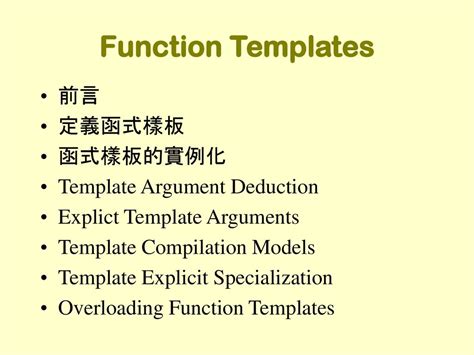 Allows customizing the template code for a given set of template arguments. The syntax and principles behind (explicit) full function template specialization are much the same as those for full class template specialization, but overloading and argument deduction come. A member or a member template of a class template may be explicitly specialized for a given implicit instantiation of the class template, even if the member or member template is defined. In a nutshell, explicit specialization definitions where all template arguments have concrete values/types should be put into the.cpp file, but declarations of them are needed to be put into. Template allows us to define generic classes and generic.