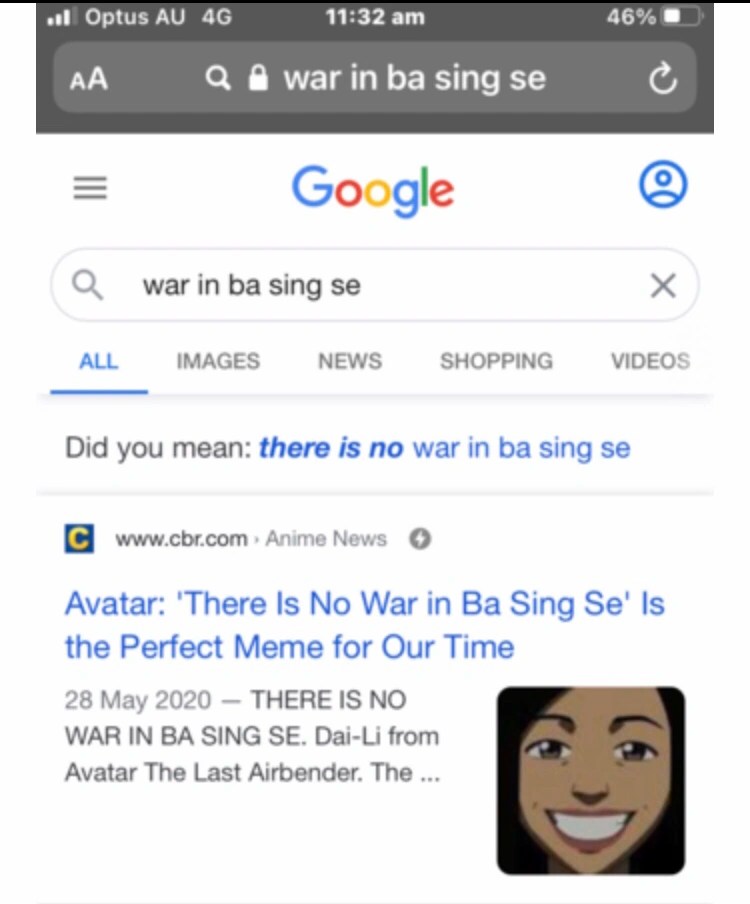 There is no war in ba sing se template also called: Avatar caption this meme all meme templates template id: There is no war in ba sing se is a phrase from the 2005 american animated television show avatar: Featured there is no war in ba sing se memes.