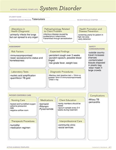 ATI system disorder template Tuberculosis filled in ACTIVE LEARNING