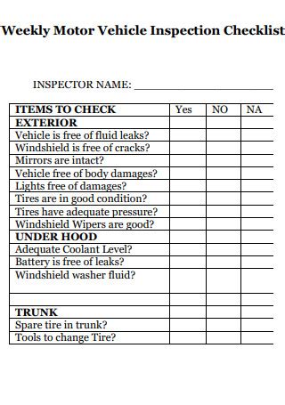 Weekly Vehicle Inspection Checklist Template Car Maintenance Tips