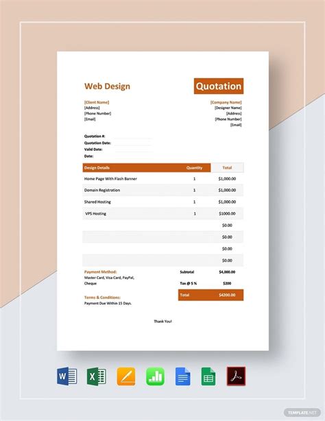 Web Design Quote Template - Instantly download web design quotation template, sample & example in pdf, microsoft word (doc), microsoft excel (xls), apple pages, apple numbers format. Utilizing our web design quote template will save you more time, energy, increase consistency and reduce mistakes when presenting to your clients. This downloadable web design quotation template will make it easy for you to quickly prepare a price quote and send over to the client in just a matter of minutes. Generate professional quotes for website design services. Download now to create detailed and professional quotes with ease. Create professional website quotes effortlessly with our customizable website design quote template. Available in a4 & us.