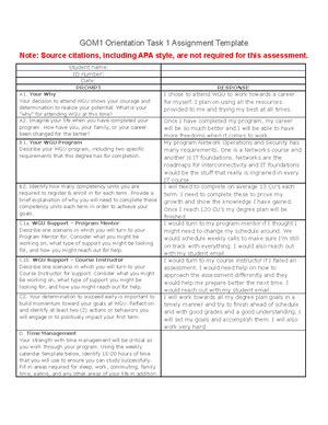It's not a real class, but rather, just a student orientation to help get you familiar with how the school works. There are some useful nuggets of information in there and you definitely want to. Gom1 orientation task 1 assignment template note: View orientation task example.docx from orientatio ora1 at western governors university.