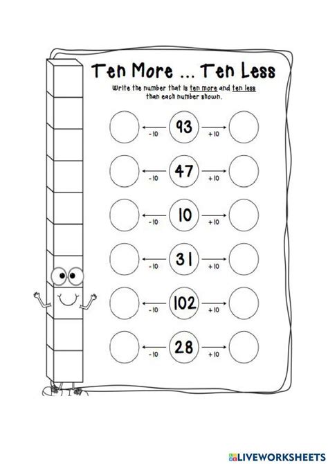 This illustrated ten more ten less worksheet includes instructional diagrams with dienes, or counting cubes, to teach your class how to visualise a math problem before solving it. They mostly come in the form of simple math. Practice with hundreds charts, base ten. Instant downloadcovers all age groupstrusted by millionsratings & reviews
