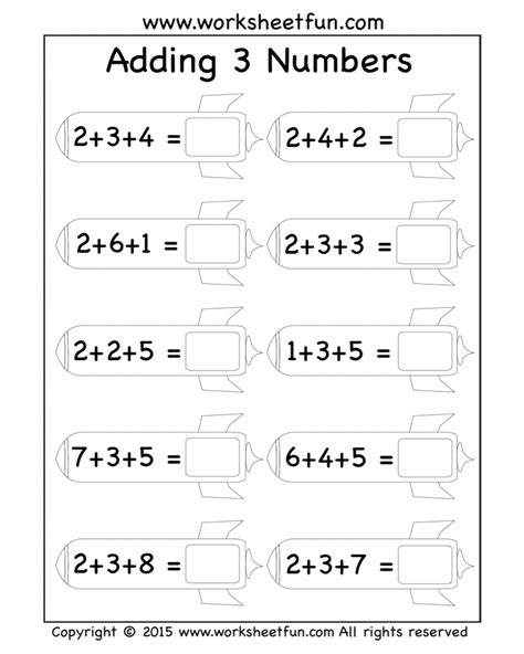 3 Number Addition Worksheets