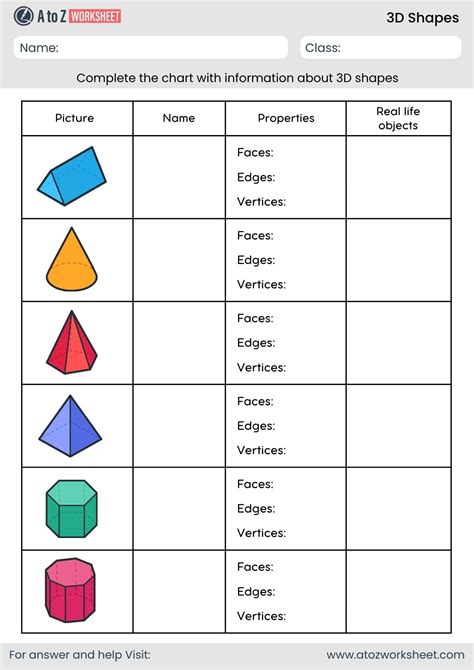 3D Shapes Faces Edges Vertices Worksheets With Answers