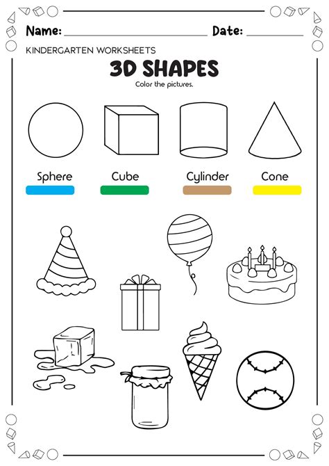3D Shapes Kindergarten Worksheet