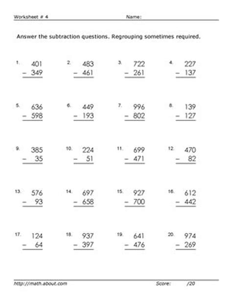 3rd Grade Math Worksheets Subtraction Worksheet Resume Examples