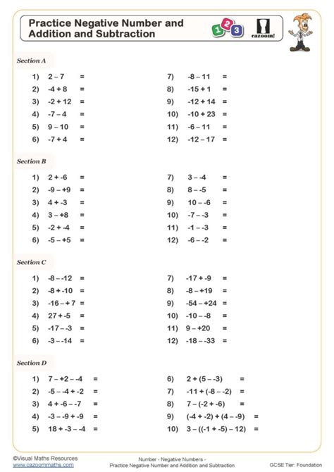 Each question corresponds to a matching. By using this resource, students will have the opportunity to practise adding and subtracting positive and negative numbers, helping them build a strong foundation in this essential maths. These sheets come contains enough practice exercises for students. Learn addition of a negative and a positive number with printable worksheets from easy teacher.