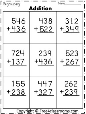 Adding 3 Digit Numbers With Regrouping Worksheets
