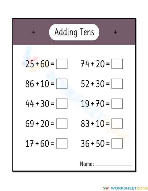 Check out this colorful addition worksheet that offers helpful counters in frames to guide children as they add by tens! The size of the pdf file is 31892 bytes. Assess your students’ understanding of addition by having them solve addition problems within 10. Students add ten to random numbers under 100.