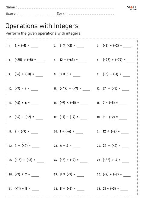 This Page Includes Integers Worksheets For Comparing And Ordering Integers, Adding, Subtracting, Multiplying And Dividing Integers And Order Of Operations With Integers.