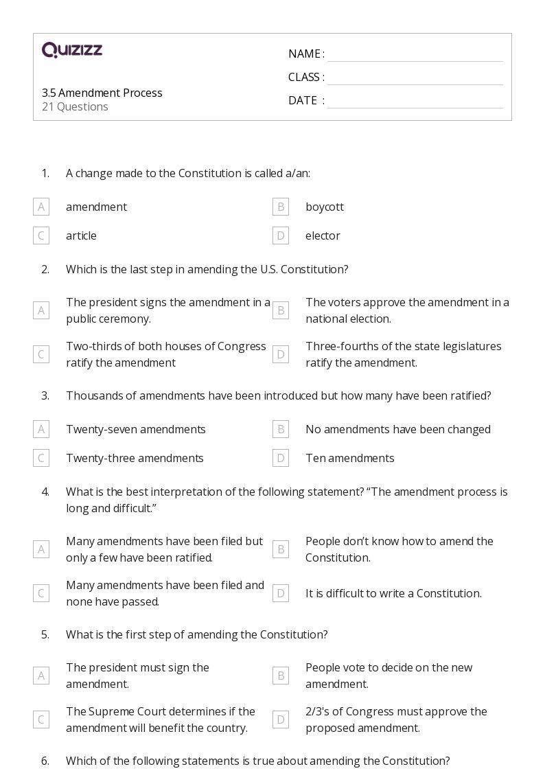 The second page of the pdf provides the answer key, which allows teachers to quickly check students’ work for accuracy. What does the second amendment guarantee? Learners will match each of the first ten amendments with its description in this social studies worksheet. The answers are as follows: As you read the different recommendations for constitutional amendments offered first by the ratifying conventions and then james madison, make a note on the worksheet below of which.