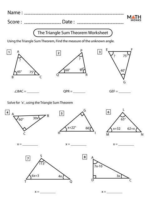 Up to 24% cash back triangle sum theorem id: Up to 24% cash back ii. Practice finding interior and exterior angles in triangles with whole numbers and algebraic expressions. A worksheet on the triangle angle sum theorem.