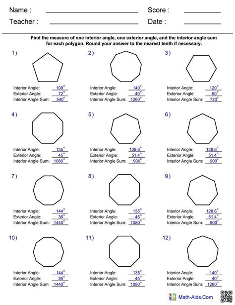 If so, what is it? Hone skills with our angles in polygons worksheets packed with regular polygons like pentagons and hexagons and irregular polygons like quadrilaterals and parallelograms. (total for question 3 is 2 marks) 3 work out the size of each interior angle in a regular pentagon 32) is there a regular polygon with an interior angle sum of 9000°?