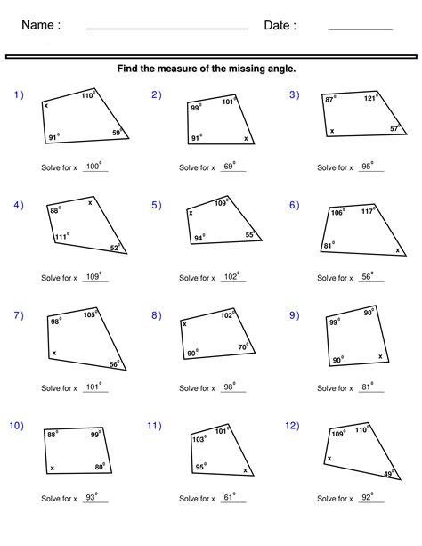 Solve for x in each of the triangles below. Three differentiated worksheets (with solutions) that allow students to take the first steps, then strengthen and extend their skills in working with angles in trian Make sure to bubble in your answers below on each page so that you can check your work. Write down the possible sizes of the other two angles in the triangle.