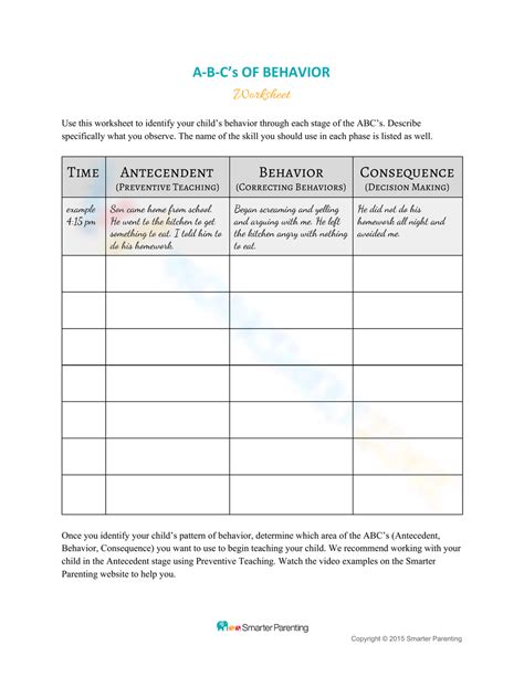 This worksheet helps by dissecting events surrounding a behavior,. Describe what you see and hear. It stands for antecedents, beliefs, and. Antecedent/prevention strategies behavior problems consequence/management strategies (e.g., whining;