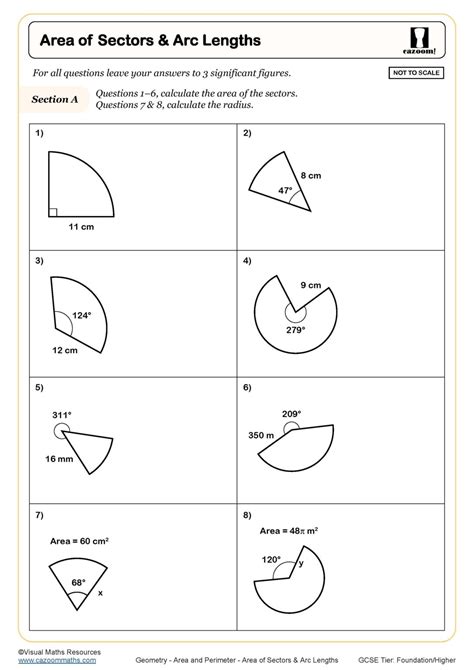 Download a printable pdf worksheet with questions on finding areas of sectors, arc lengths and missing information. Choose from different measurement units and levels of difficulty. The area of a sector is 25 π cm 2. Find printable pdf worksheets to practice finding arc length and area of a sector using formulas and examples.