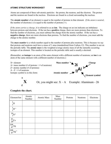 Improve understanding of atomic structure with these 11 comprehensive worksheet. A worksheet reviewing atomic structure, the periodic table, atomic notation, and the ability to calculate number of protons, neutrons, and electrons in an atom. The atomic number gives the identity of an element as well as its location on the periodic table. It also in a neutral atom of that element.