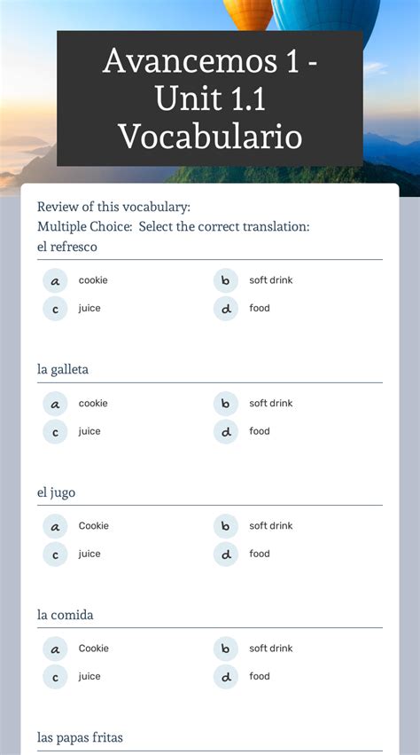 Avancemos 1 unit 5 lesson 1 review worksheet. 1 includes answers to chapter exercises, as well as detailed information to walk you through the process step by step. It comes in editable and pdf versions with an. I have divided it by unit and lessons in order to make it easier for students to find the assignments when needed.