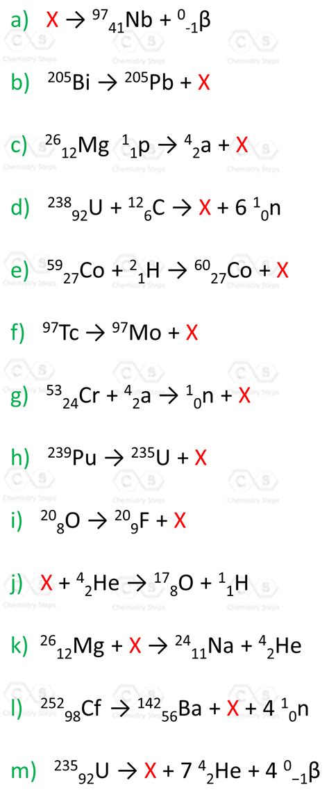They range from simple to complex and this page is for higher levels of chemistry learners. Using correctly balanced equations is important when trying to understand nuclear reactions. In this practice worksheet students will demonstrate balancing nuclear equations for mass and charge and then identifying the reaction as alpha, beta, or neutron decay. Success criteria use the conservation laws to find an unknown in a nuclear reaction equation. With these nuclear equations we track the atomic number and the mass number. 1 0 n + 235 92 u → 2 1 0 n + _____ + 137 52 te.