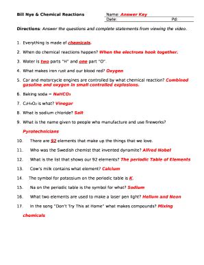 Bill Nye The Science Guy Chemical Reactions Worksheet Printable Word