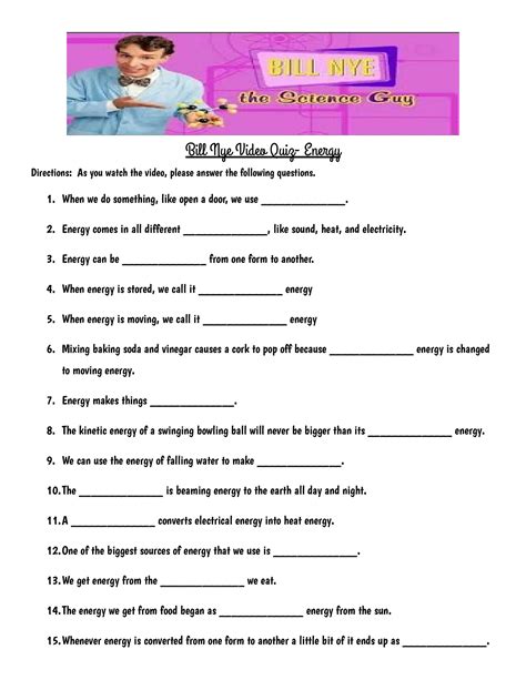Bill Nye Energy Video Worksheet Answers
