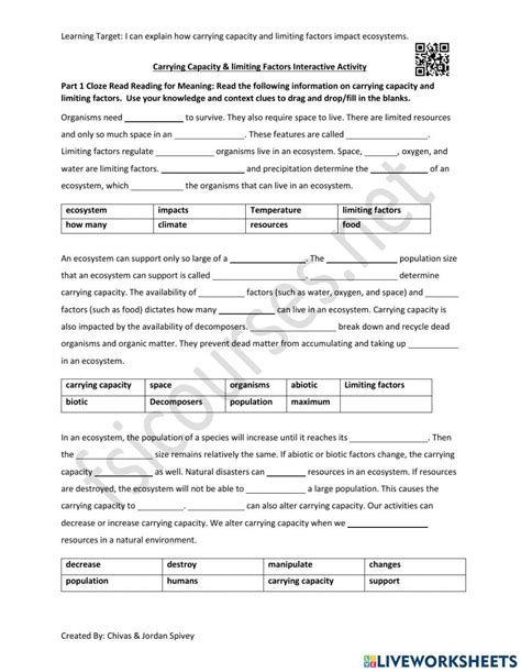 Limiting Factors And Carrying Capacity Worksheet Printable Word Searches