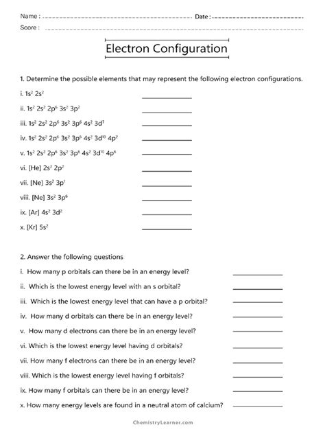 Chemistry Worksheet Electron Configuration - The electron configurations in this worksheet assume that lanthanum (la) is the first element in the 4f block and that actinium (ac) is the first. 1) sodium 1s22s22p63 2) potassium 3) chlorine 4). This worksheet provides extra practice for writing electron configurations. Chemistry i worksheet name electron configuration (15 problems) 1. If you do so, i would appreciate hearing. Write the unabbreviated electron configurations of the following elements: Electron configuration exceptions to aufbau's principle: