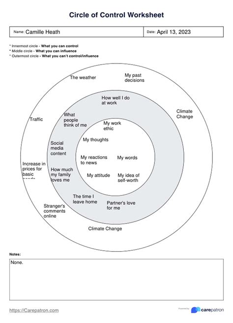 Students can fill in the outer circle with examples of things we cannot control and the inner circle with the two things they can control: Students will write the things they can control inside the circle and the things they cannot control outside of the circle. The circle of control worksheet aims to support teachers dealing with change by focusing on what is within their control. By considering what they do.
