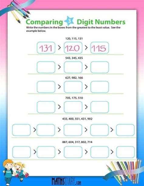 These comprehensive worksheets are designed to provide ample practice for students in recognizing and ordering numbers! In this free worksheet, students must compare and order cute monsters with 3 digit numbers. Discover a collection of free printable math resources designed to help students develop essential skills in comparing and analyzing three. Determine a number greater/smaller than another;