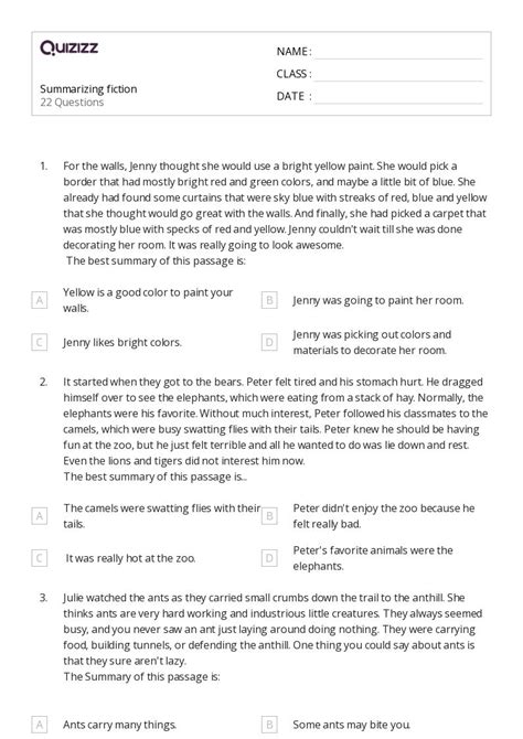 50+ Fiction Comprehension Questions worksheets for 4th Grade on Quizizz