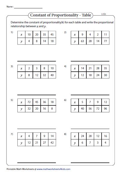 Explain why or why not. Interpret the constant of proportionality as the slope of the linear relationship y = kx. Find the constant of proportionality, k. Each worksheet is aligned to.