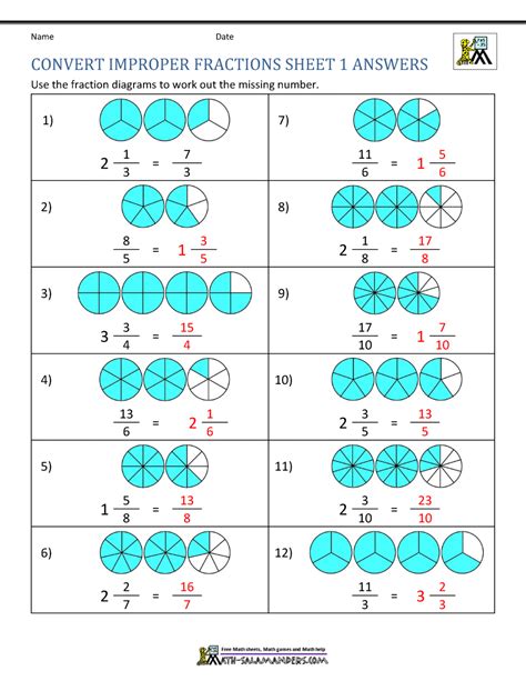 Converting Improper To Mixed Fractions Worksheet