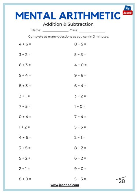 Mental Maths Addition Subtraction Multiplication And Division Worksheet