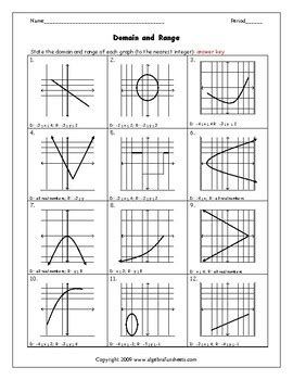 Our domain and range worksheets are free to download, easy to use, and very flexible. We have domain and range mapping diagrams, identifying functions from graphs, determining domains and ranges from graphs, and determining domains and ranges from ordered pairs. Test skills acquired with this printable domain and range revision worksheets that provide a mix of absolute, square root, quadratic and reciprocal functions f(x). Download domain and range worksheets for students.